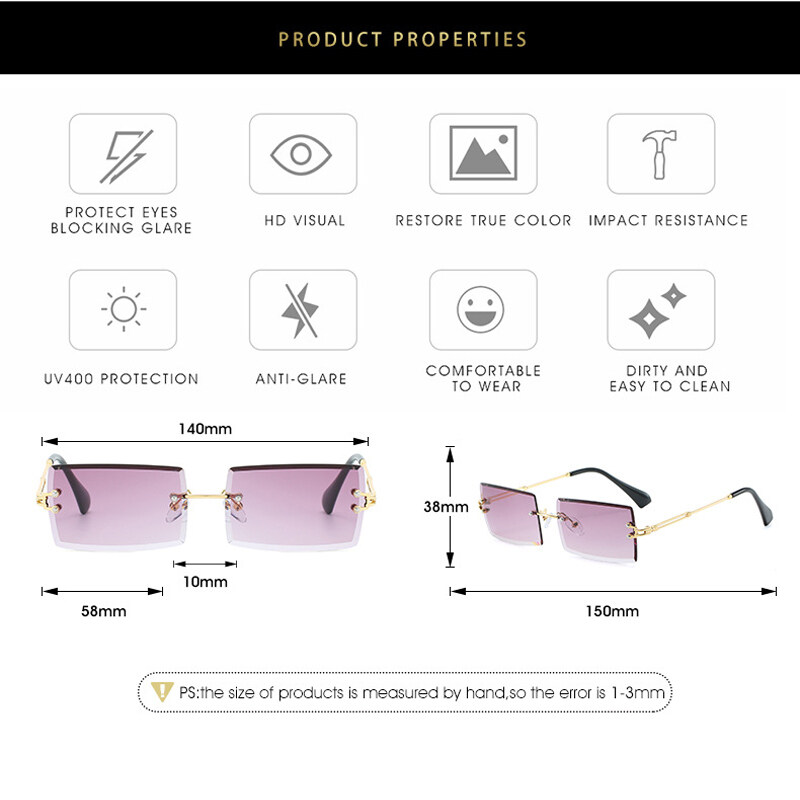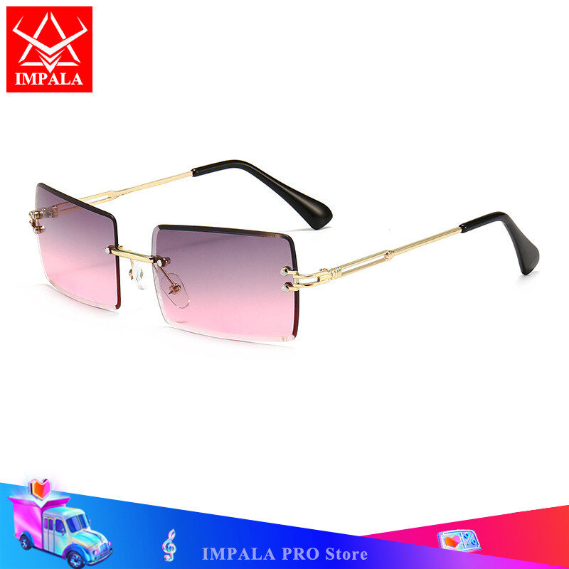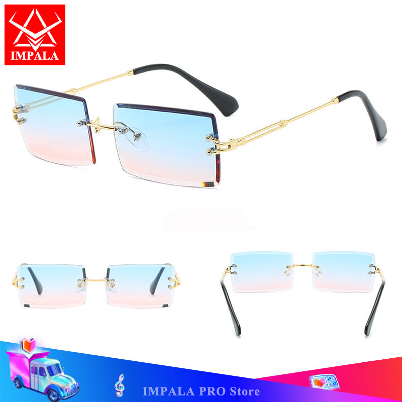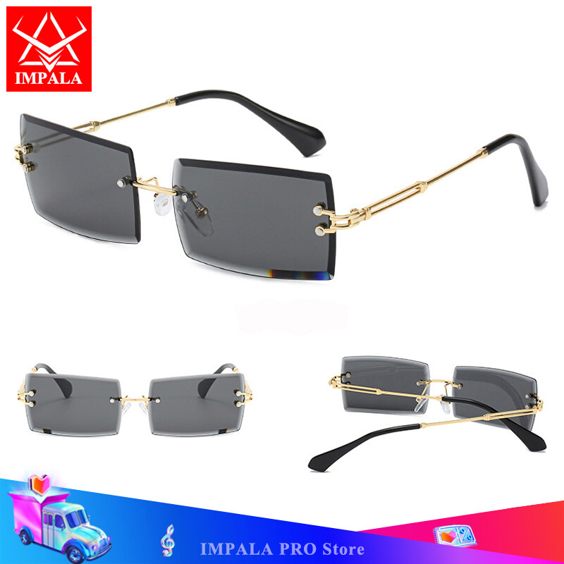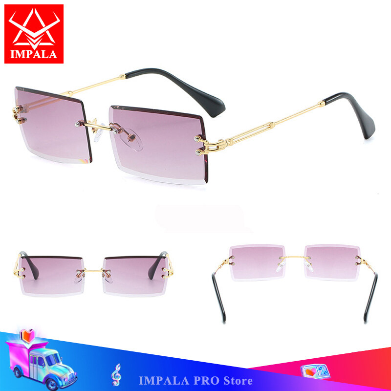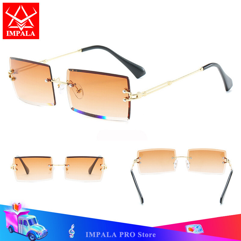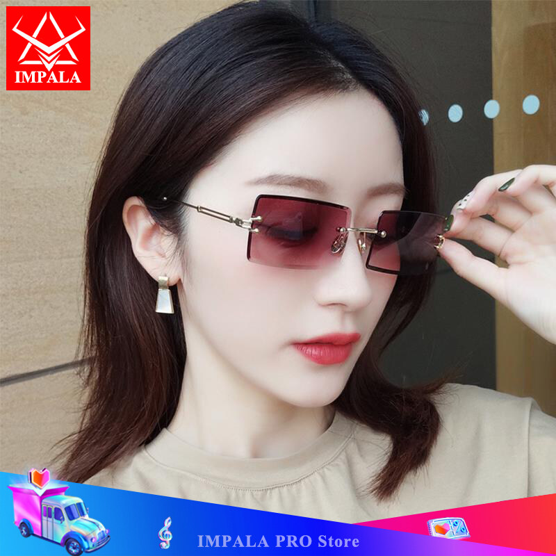IMPALA QT1802W Fashion Rimless Glasses for Women Korean Style Sunglasses UV Protection HD Lens Metal Frame Sqaure Sun Glasses Cool Style Women's Sunglasses