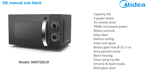 MIDEA MM720CJ9 20L BLACK MICROWAVE OVEN