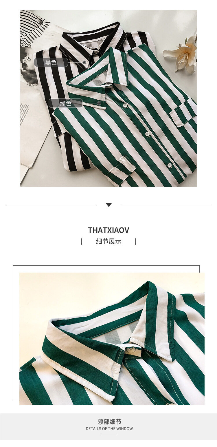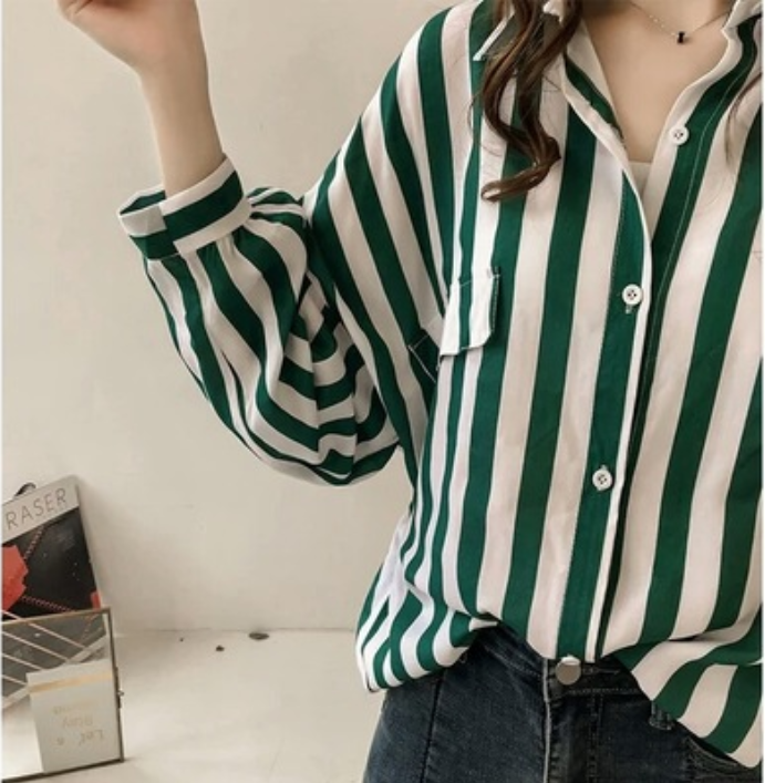 EDQRDQ Women's Fashion Plus Size Blouse Green Stripe Loose Long Sleeve Shirts Tops