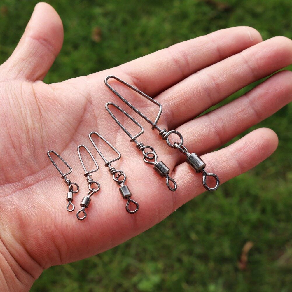 Sougayilang 33mm-70mm 50pcs Swivel Gear Fishing Swivels with Snap Lock Stainless Steel Black Color Nickel Fishing Connector Fishing Gear