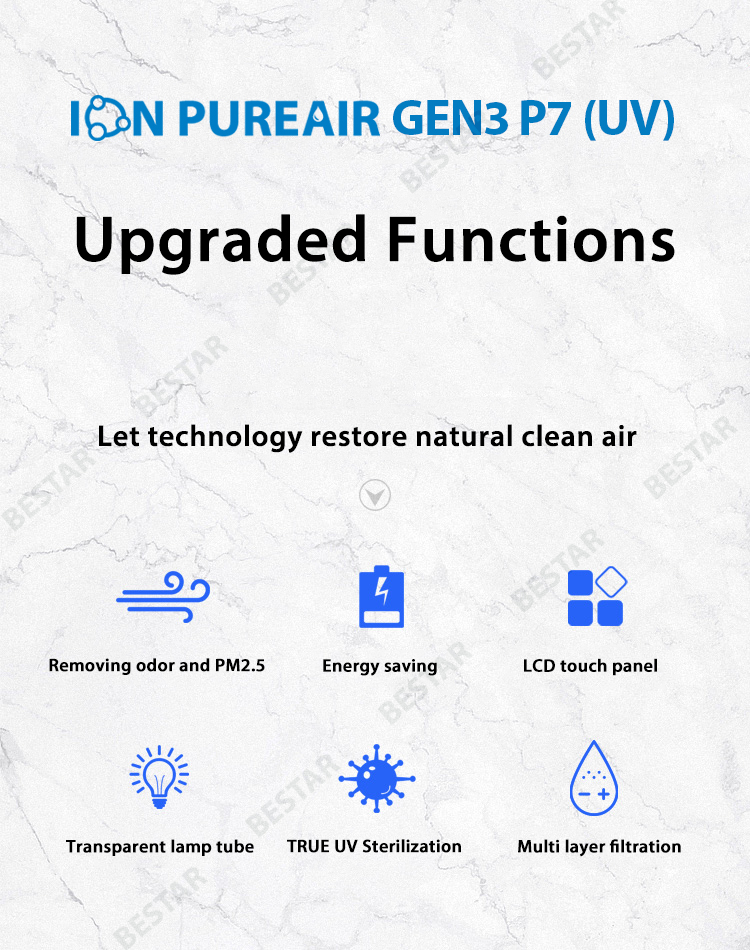[SG SELLER]Air Purifier ION PUREAIR GEN3 P7(UV) True UV Light Sterilizer/ LCD Display/Hepa Filter/Negative Ion/Compact/Quieter/Powerful(1+1 Free H13 Hepa Filter)