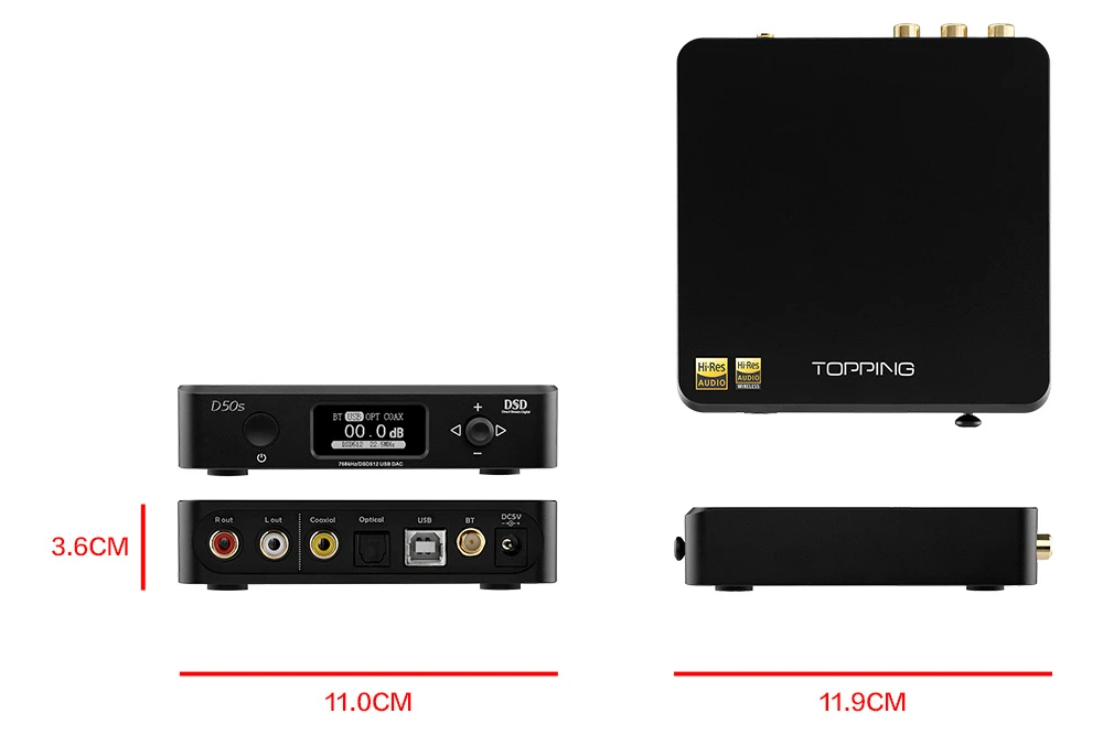 TOPPING D50s DAC is certified by the Japan Audio Society for wired and wireless Hi-Res Audio. The Bluetooth 5.0 CSR8675 chip supports AAC/SBC/aptX/aptX-LL/aptX-HD/LDAC codecs. At the same time, Bluetooth can be easily turned off from the main menu or by using the remote control.