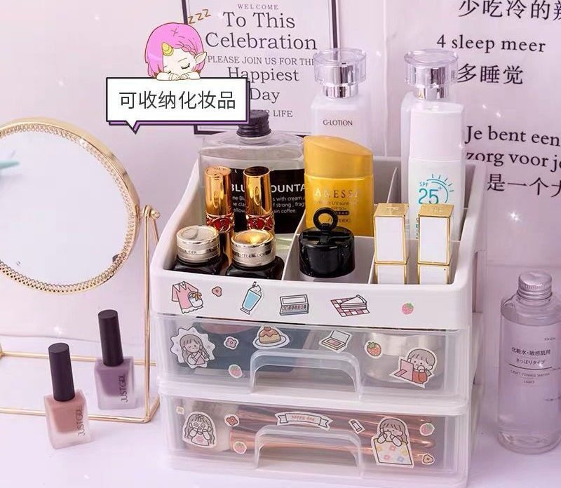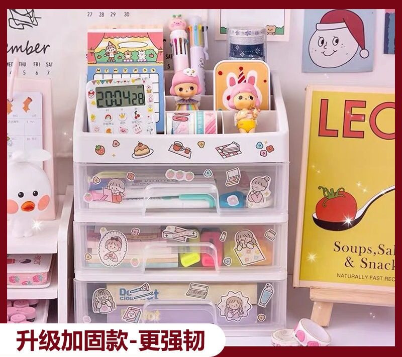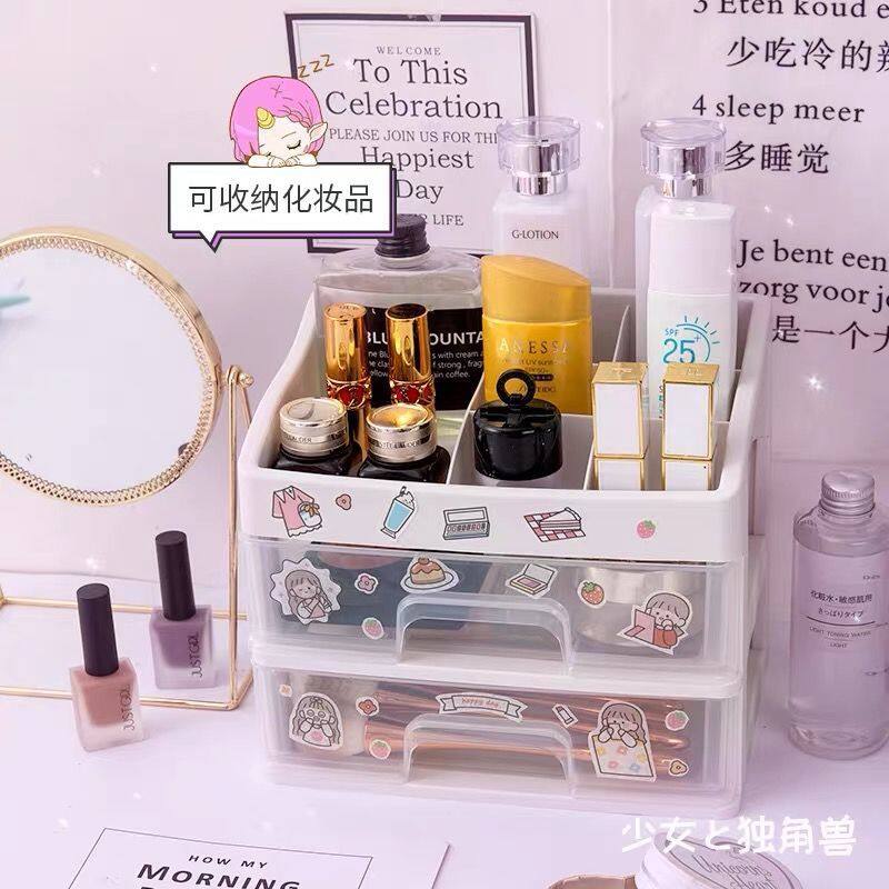 SKE307 【READY STOCK】 ins girl heart desktop drawer type student dormitory makeup storage box desk tape stationery multi-layer storage box