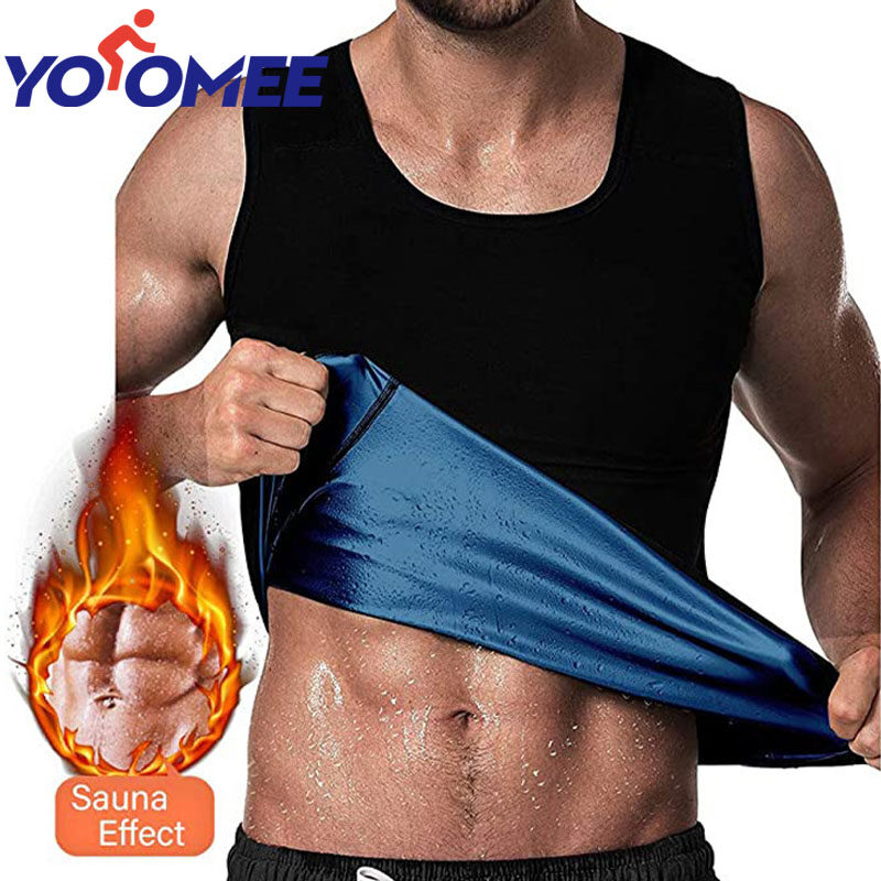 Yoomee Men Body Shaper Polymer Sauna Sweat Vest Waist Trainer Shapewear Weight Loss Belly Slimming Shirt Fitness Corset Top Burning Fat