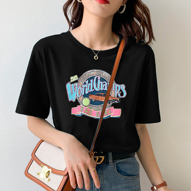 • INWPLLR Casual All-match Women's Tops Letters Printing T-Shirts Summer Style Short Sleeve Women T-Shirt Newest Korean Cotton Tshirts Female