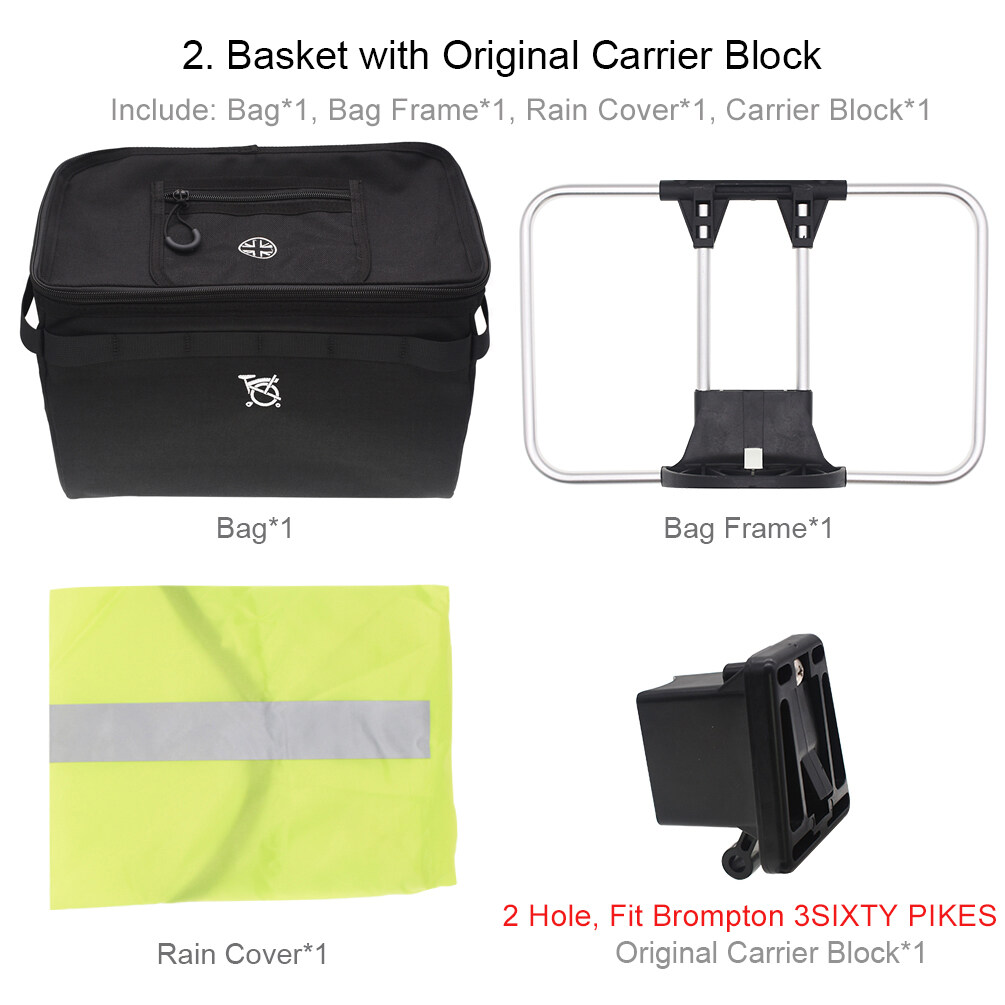 2. The "Basket with Original Carrier Block" option: It fit Brompton, 3SIXTY, PIKES folding bike.
