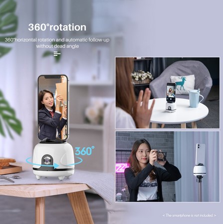 ▶【360 Degree Rotation】Featuring in 360° horizontal rotation design, wherever you go, this face tracking phone holder follows to capture every expression and move, so you'll never walk off screen and always be the center. When shooting multiple people, it will automatically detect the central person or the nearest person.