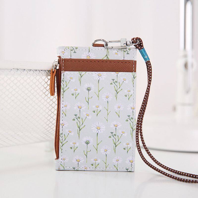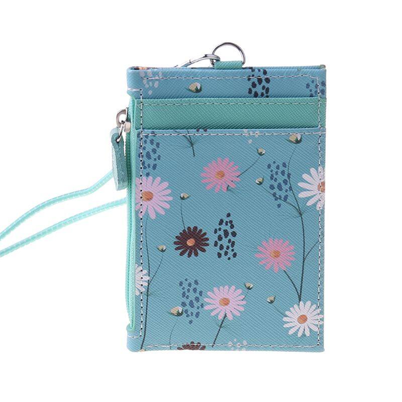 Portable ID Badge Credit Card Holder Leather Pocket Case Business Wallet with Neck Lanyard