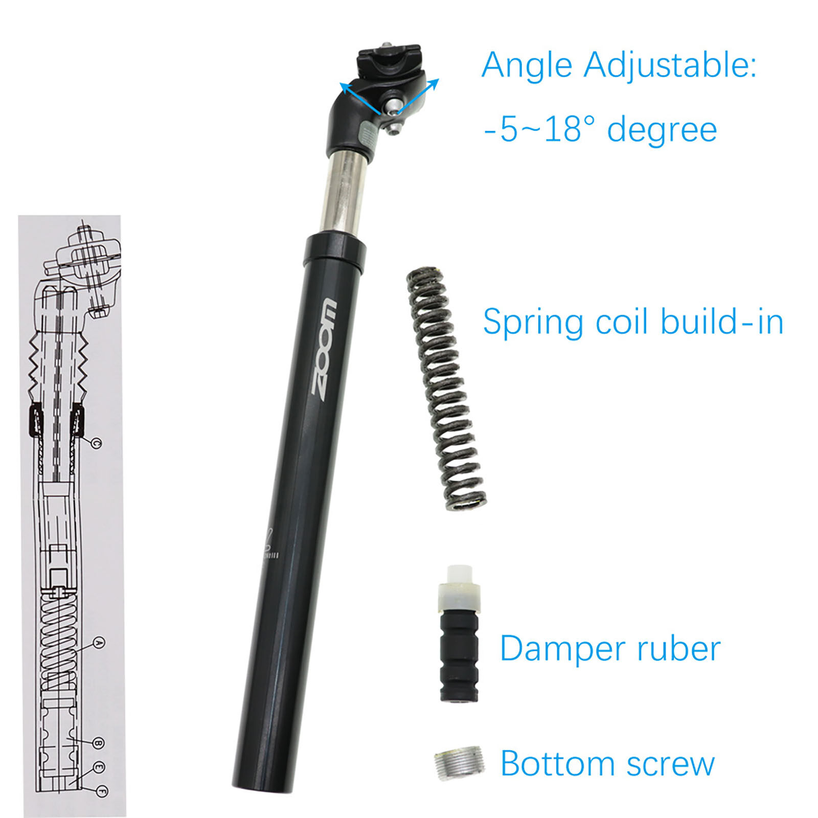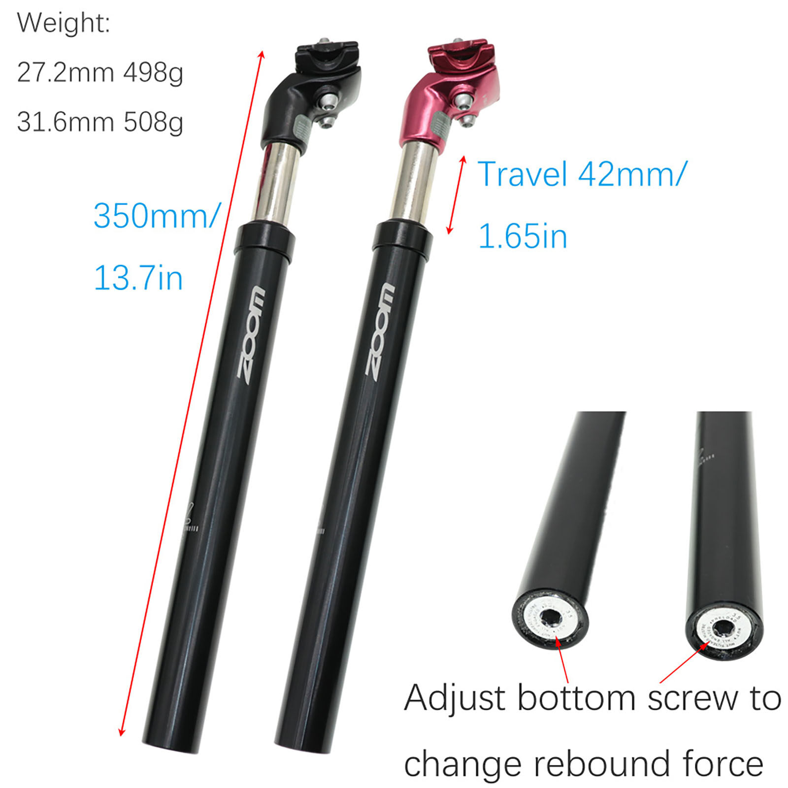ZOOM Suspension Seatpost Shock Absorber damping Alu MTB mountain bike Bicycle Seat post 27.2 28.6 30.1 30.4 30.9 31.6mm X350MM