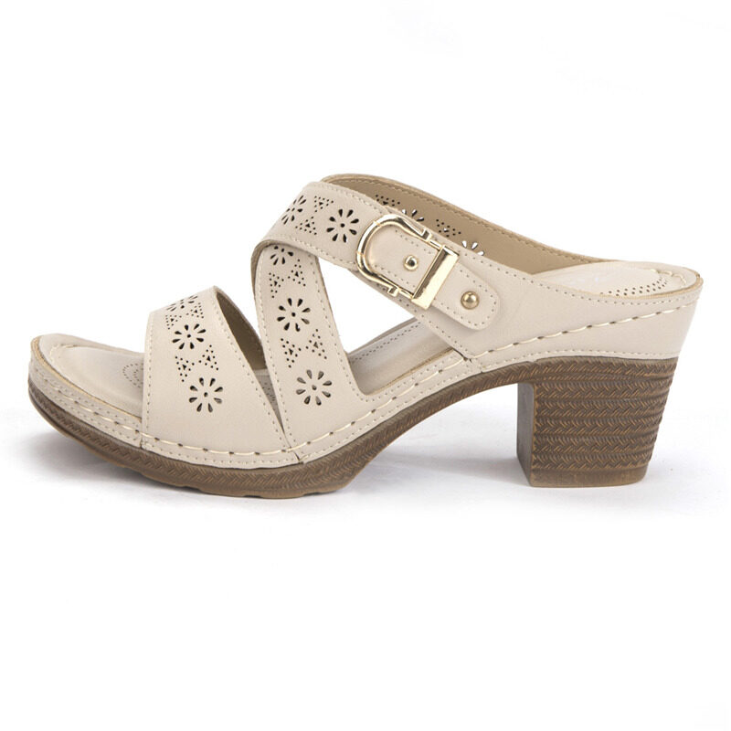 U-COZY Block Heeled Sandals Women Slip-on Cross Cutout Heels Wedges