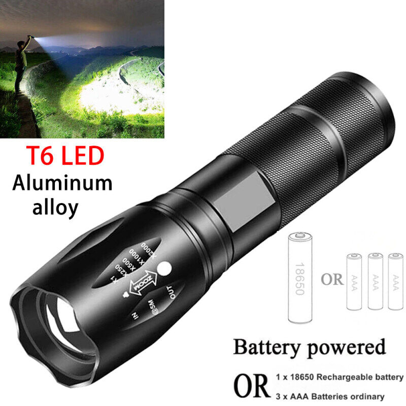 Switch Type: ClickSwitch location: tail capBrightness:about 980000LMDimension (Lx Head D x Body D):5.31x1.37x1.1 inch/13.5x3.5x2.8cmSuitable for hunting, cycling, climbing, camping and outdoor activities,daily use,etc.Package:1x Cree XML T6 LED Flashlight