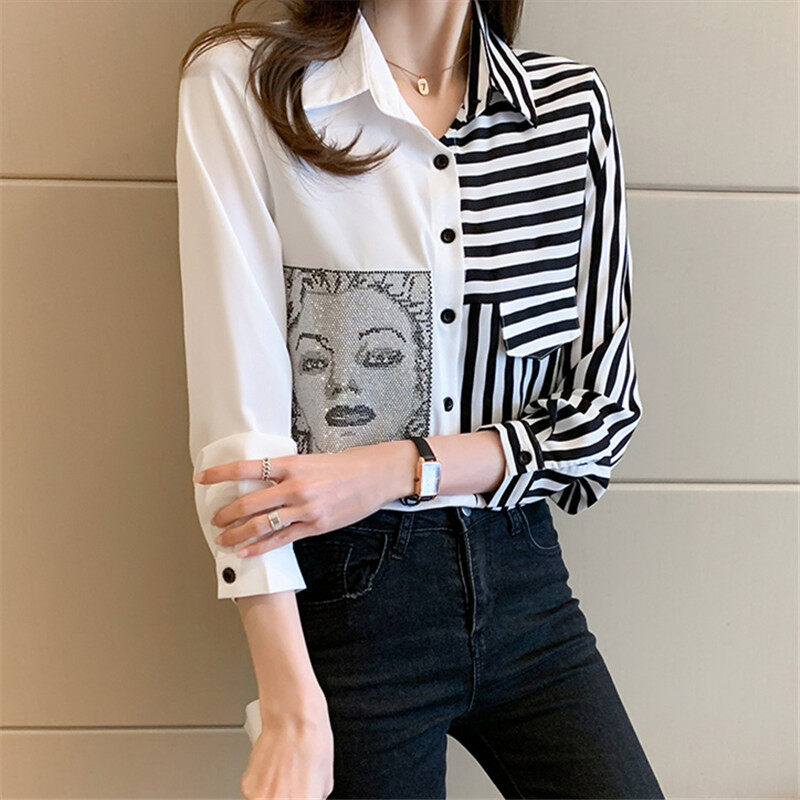 Stripe Shirt Women Long Sleeve Chiffon Blouse Korean Style Casual Fashion Top