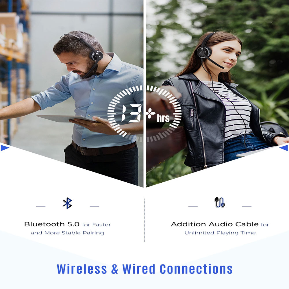 [Mpow] HC3 Bluetooth 5.0 Wireless Mono Headset with Microphone with Dual Noise Canceling, Wired and Wireless useable