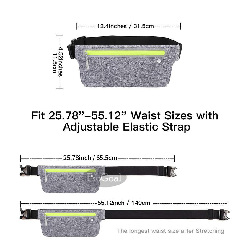 EsoGoal Slim Running Belt Waist Pack, Water Resistant Runners Belt Fanny Pack with Zipper Ultra Light Bounce Free Waist Pouch Fitness Workout Belt Sport Waist Pack Exercise Waist Bag – Suitable for Hi
