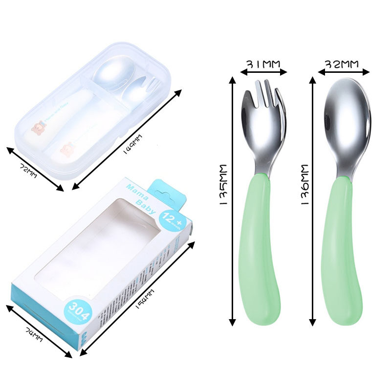 Mododo 2pcs/Set Spoon Forks Portable Children 1Box Kids Cutlery 304 Stainless Steel Tableware Baby Feeding Utensils Cartoon Pattern