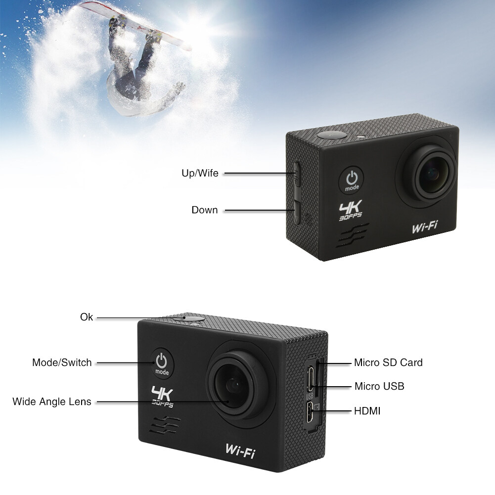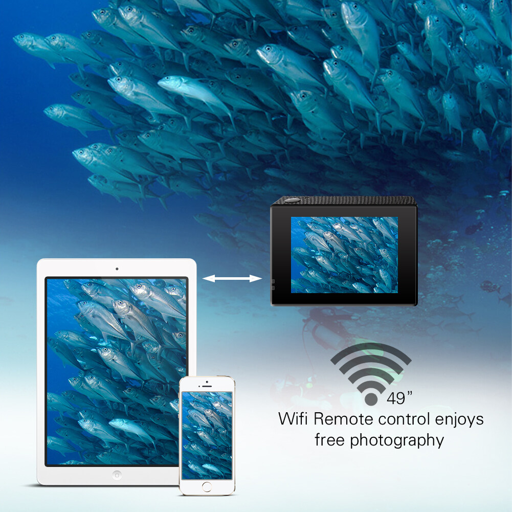 Action Camera,4K Ultra HD WiFi Sports Camera 16MP 170 Degree Wide Angle 2.0 Inch Waterproof Diving Camera with 2 Batteries and 19 Accessories Kit Included Black