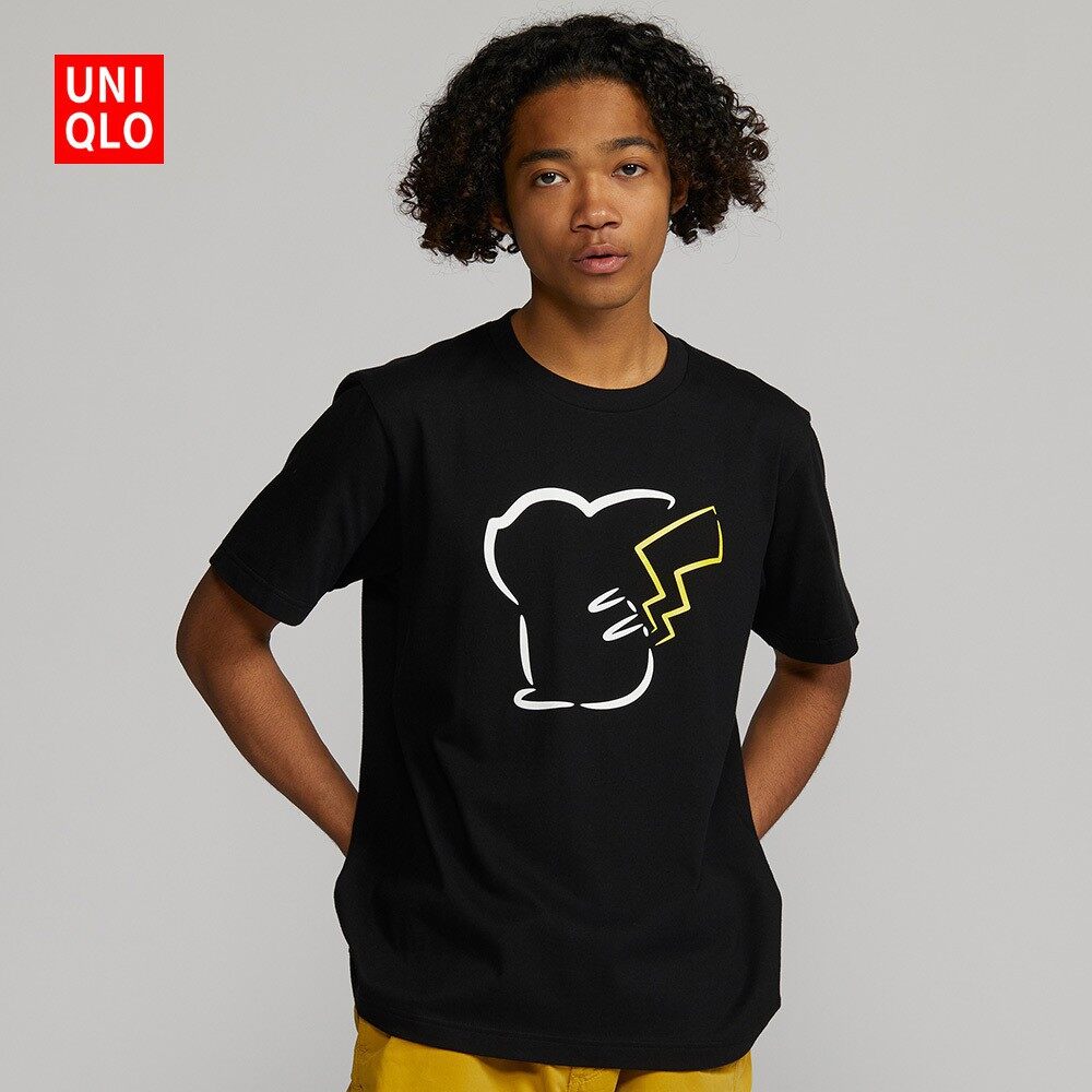 Uniqlo Pokémon T-shirt black T-shirt short-sleeved men and women Pikachu cartoon style UNIQLO