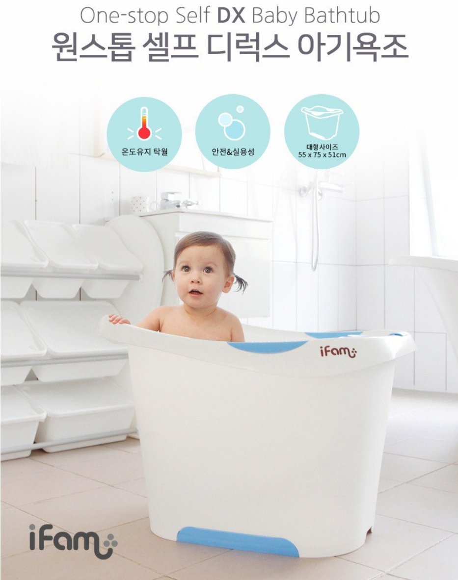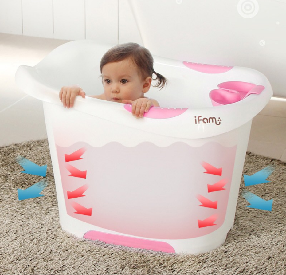 [iFam] One Stop Self Deluxe Baby Bathtub ● Bathtub with Seat ● Keeps Warm ● iFam Big Size Bathtub ● Baby Bathroom ● Large Baby Bath Basic Bath Bucket ● iFam Bath Baby Room Toddler Large Bath Tub