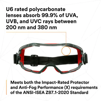 With models featuring 3M™ Scotchgard™ Protector Anti-Fog Coating, the 3M™ GoggleGear™ 6000 Series is a large profile goggle design that provides better fog and abrasion resistance when compared to traditional anti-fog coatings. Designed to fit over glasses.