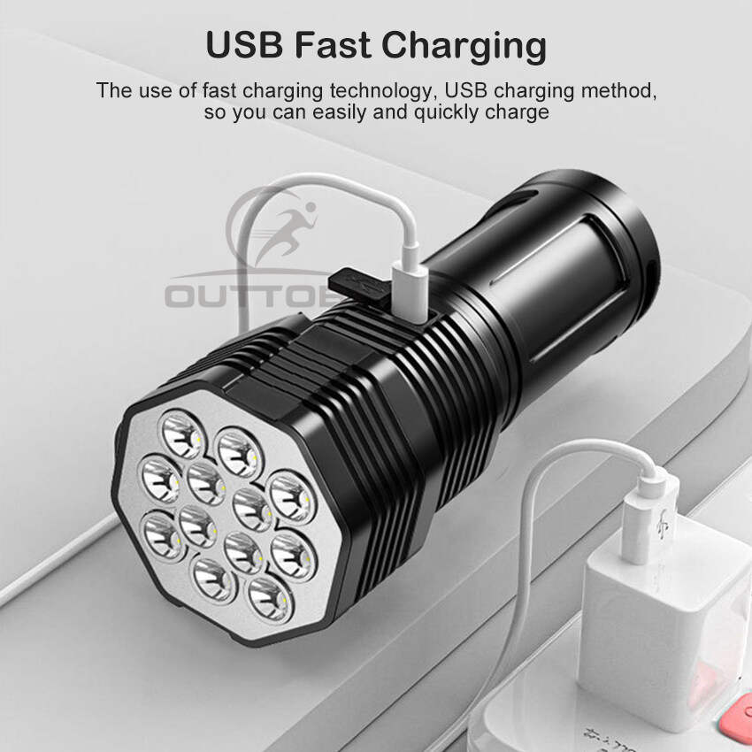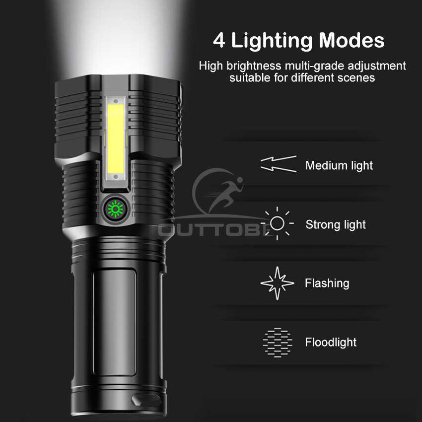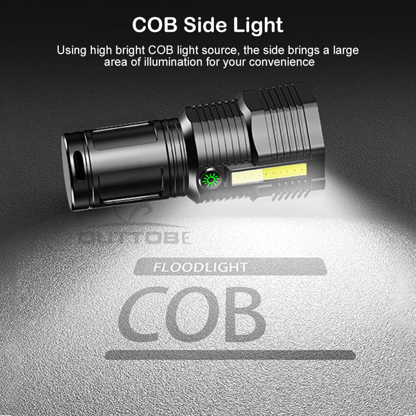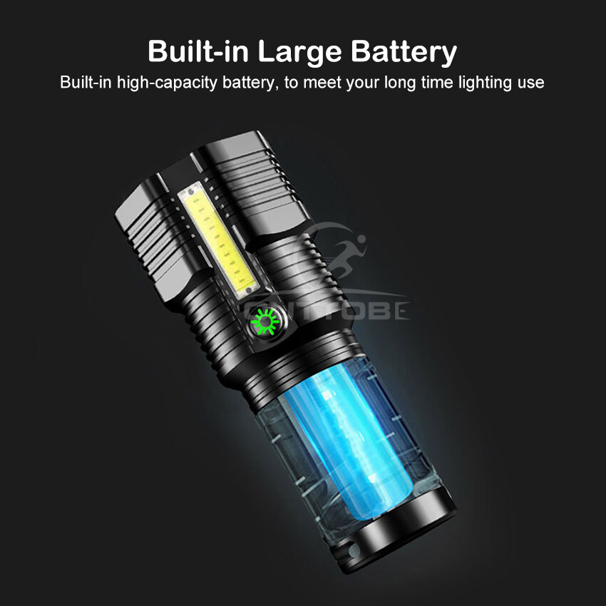 Outtobe Flashlight Mini Flashlight Bright LED Flashlight Waterproof Flashlight Outdoor Focusing Torchlight Portable Home Emergency Lamp Built-in Battery USB Rechargeable Torchlight Zoom-able focus Lig