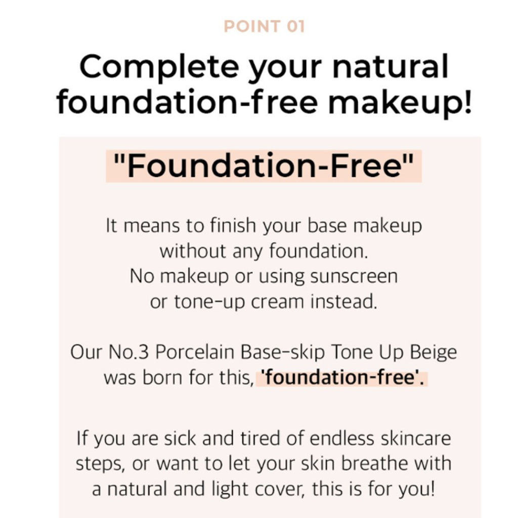 Point 3. Dedicated cream for foundation-free: A simpler and more natural porcelain skin expression without foundation.