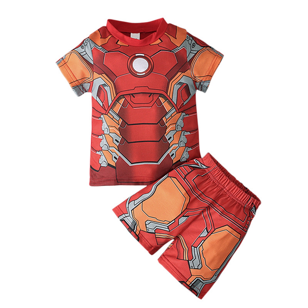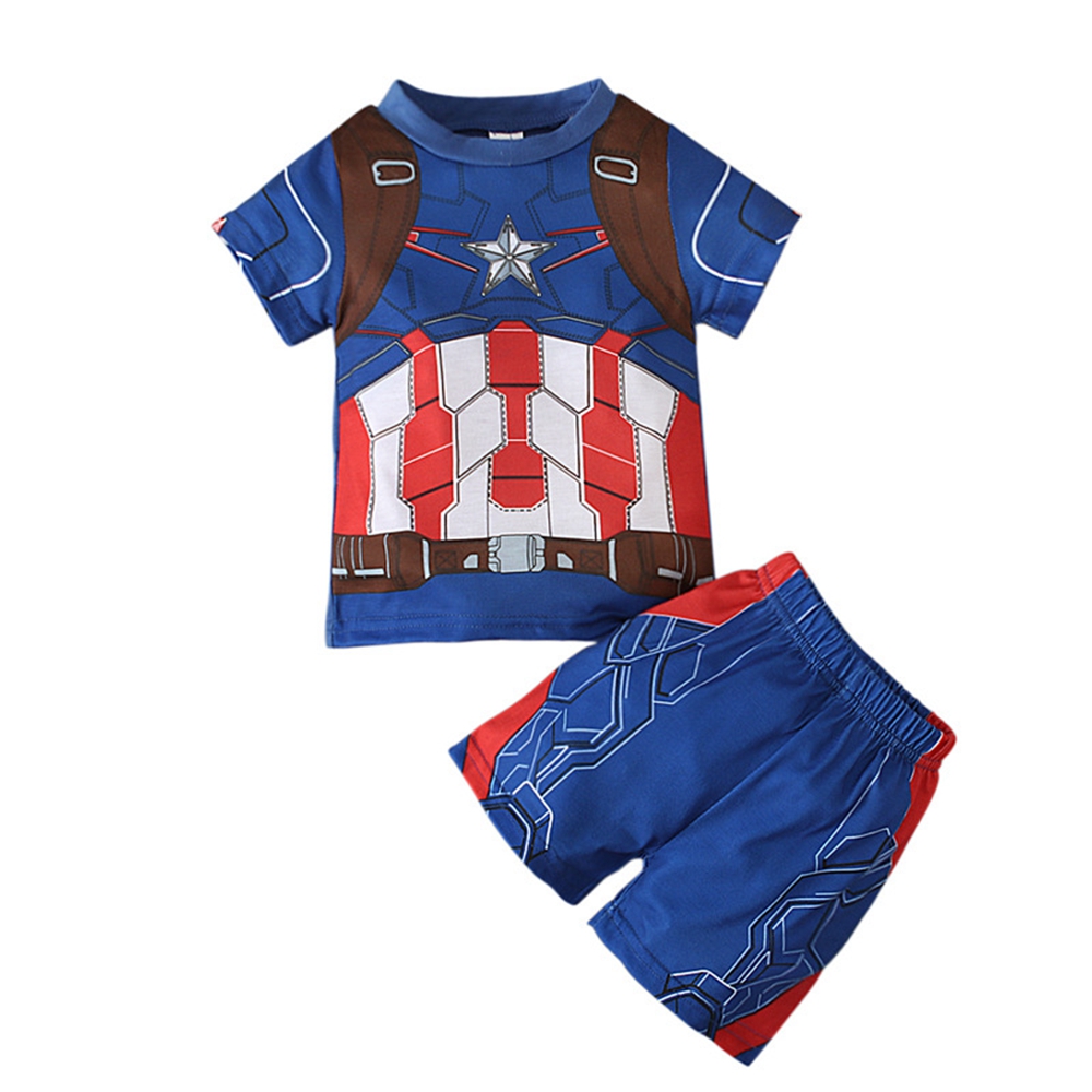 Summer Kids Boys Clothing Set Superhero Supermans Spiderman Ironman Bat-man Holk Captain America Print T-shirts + Short Pants Children Clothes Suits Sleepwear For Boy High Quality Age 1-8 Years