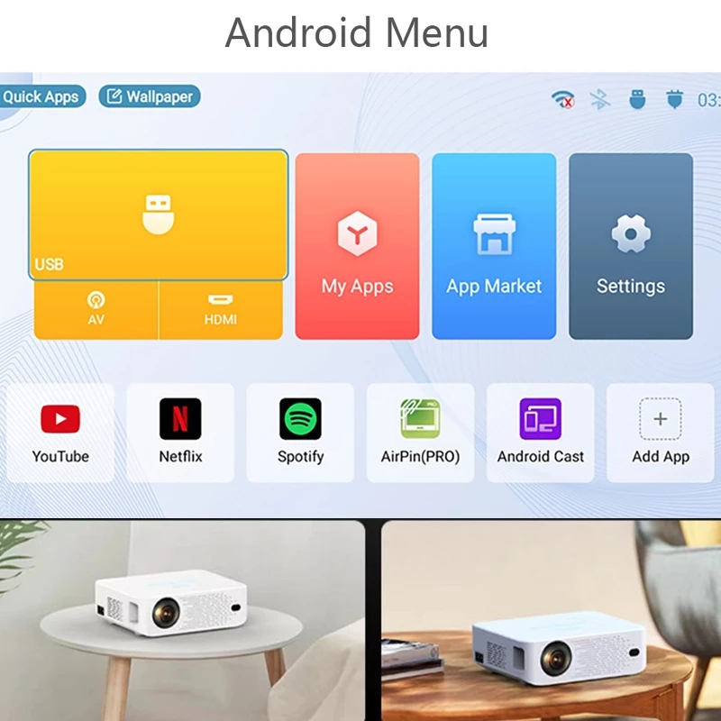 【4K Projector】Mirval Y2 Ultra HD Daytime Full HD 1080P 4K Smart Wifi Android LED Home Theater Projector Office Classroom