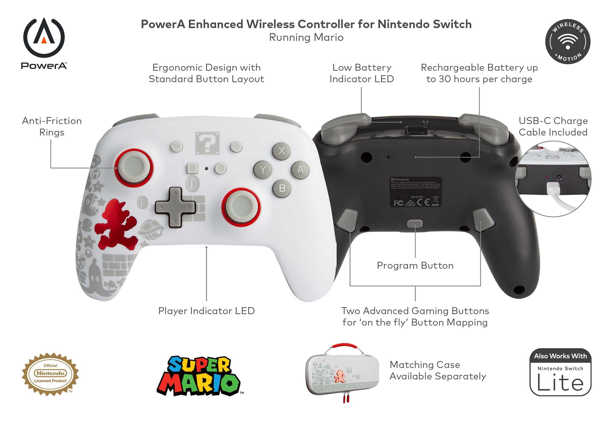 PowerA Enhanced Wireless Controller for Nintendo Switch, Nintendo Switch OLED, Nintendo Switch Lite - Running Mario (Officially Licensed)