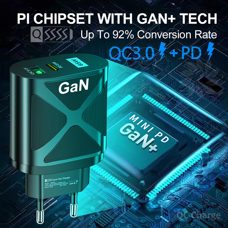 DISOUR Original 65W GaN Fast Charger US/EU/UK Plug Type-C PD+QC3.0 USB 5V/6.6A 9V/3A 12V/2.75A 20V/1.67A Quick Charging For Infinix iPhone Xiaomi Redmi Huawei Oppo Vivi Charge Cable For IOS Android