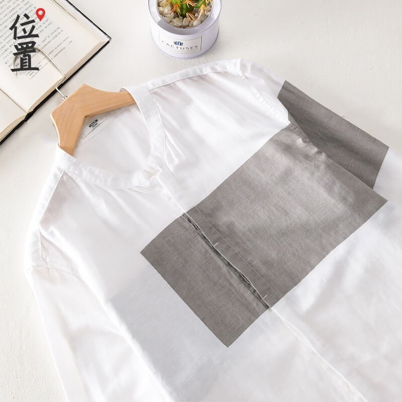 Summer Cotton Linen Short Sleeve Shirt Men Color Matching Seven-point Sleeve Shirt Trend Jacket
