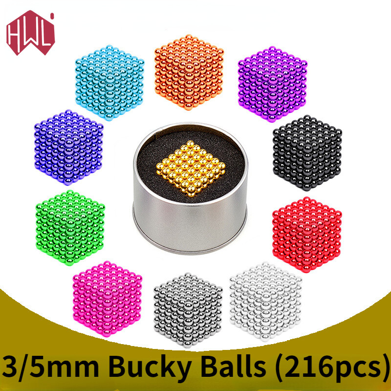 (SG Ready Stock)216PCS 3/5mm 3D DIY Magic Magnet balls Magnetic Building Blocks Balls Spheres Cube Beads Decompression Toys With Iron Box