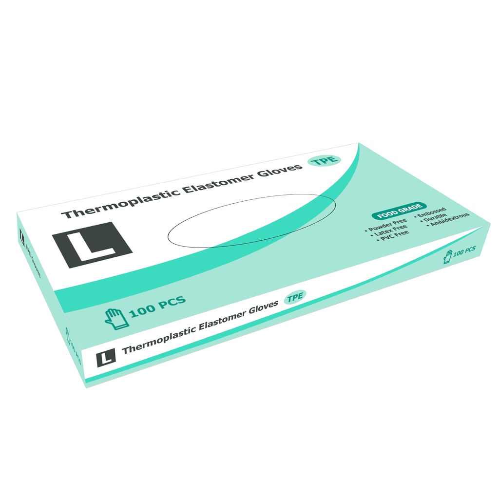 TPE gloves are made of thermoplastic elastomers, a type of plastic with high tensile strength and elongation.