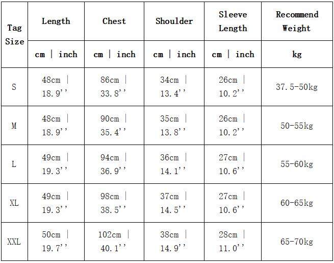 LengthChestShoulderSleeve LengthRecommend Weight