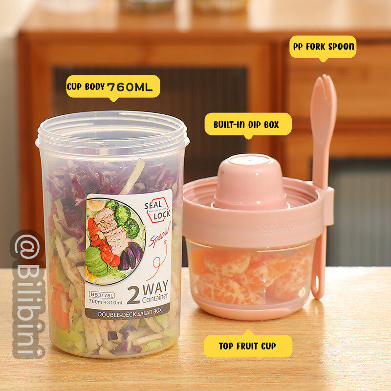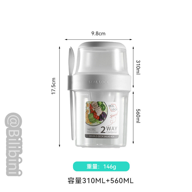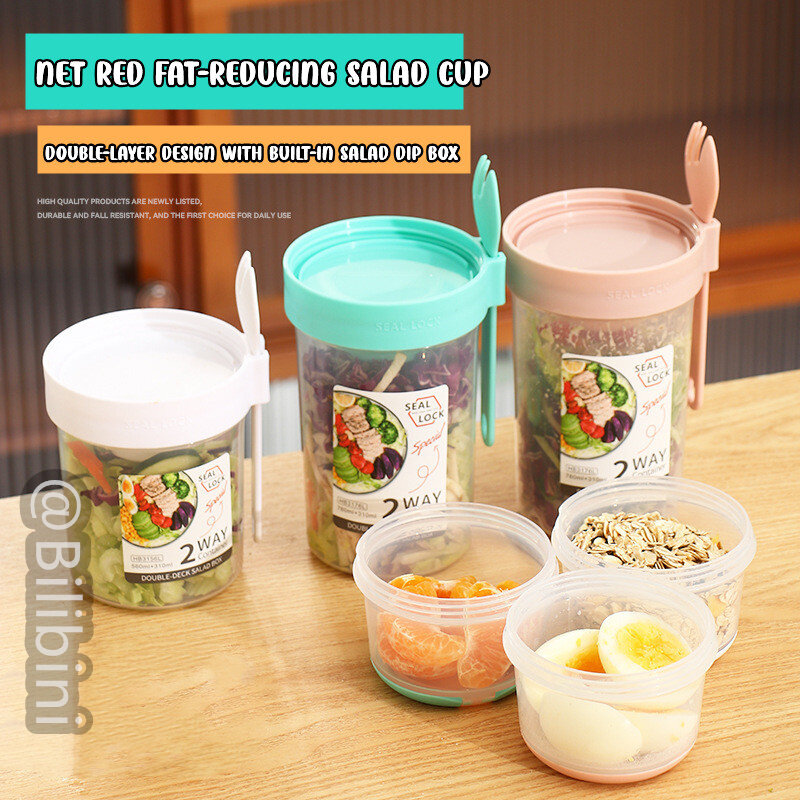 Bilibini With Spoon Lid With Fork Seal Portable Light Meal Double Layer Salad Cup