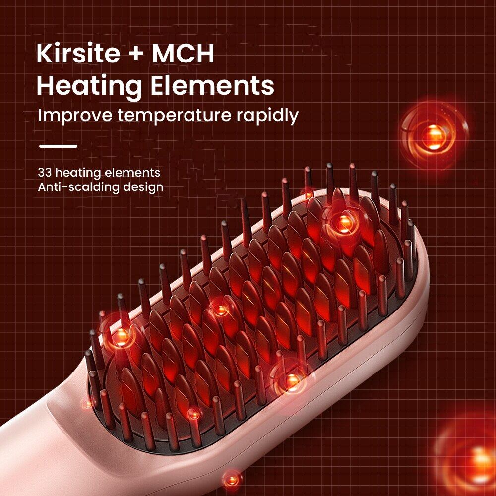 Cordless Straightener Hair Comb Brush Type C Rechargeable Wireless Anti Static Quick Heated Hair Straightening Styling Tools