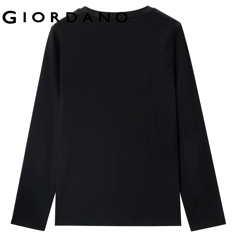 GIORDANO Women Huaxiansheng Series T-Shirts Crewneck 100% Cotton Casual T-Shirts Long Sleeve Crewneck Print Simple Tee 99392098