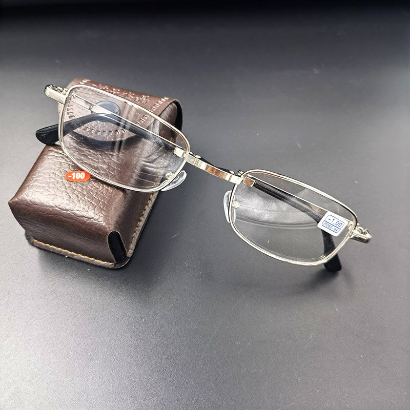 Fashion Photochromic Myopia Glasses For Women Men Square Portable Foldable Finished Nearsighted Glasses Prescription Eyeglasses With Grade -1.0 -1.5 -2.0 -2.5 -3.0 -3.5 -4.0