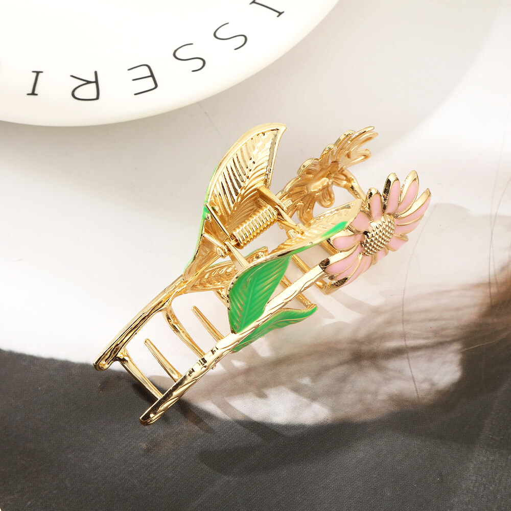 1pc Korean Gold Sunflower Hair Clip Alloy Flower Woman Hair Claw Ponytail Hairpin Summer Hair Accessories