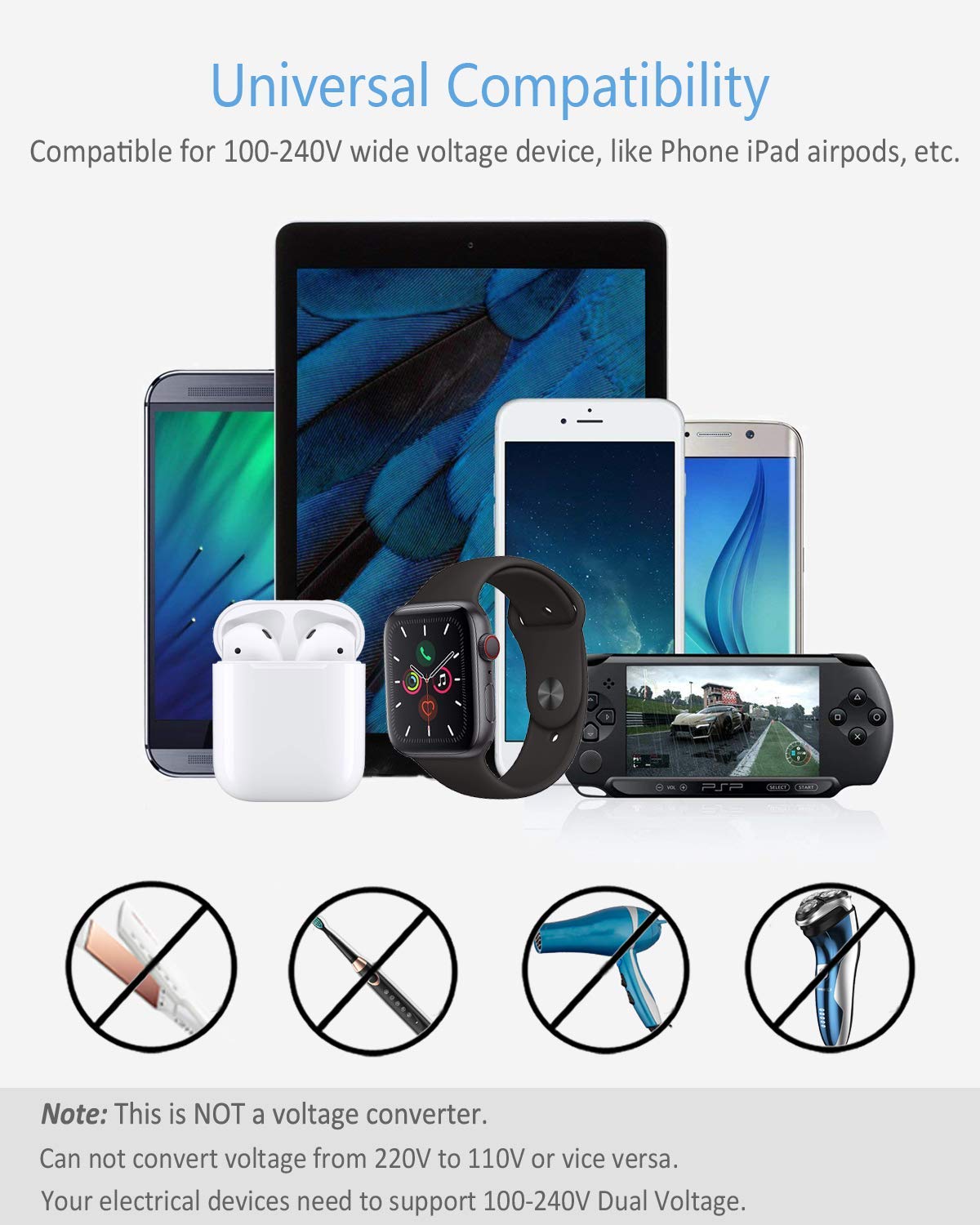 Portable and Safety: Compact and lightweight design to fit into luggage and briefcases; It has no surge protection, no cords, can be taken aboard cruise ship. The worldwide adapter with double fuse (fuse standard: 250V 10A), integrated security shutters, guard your travel security.