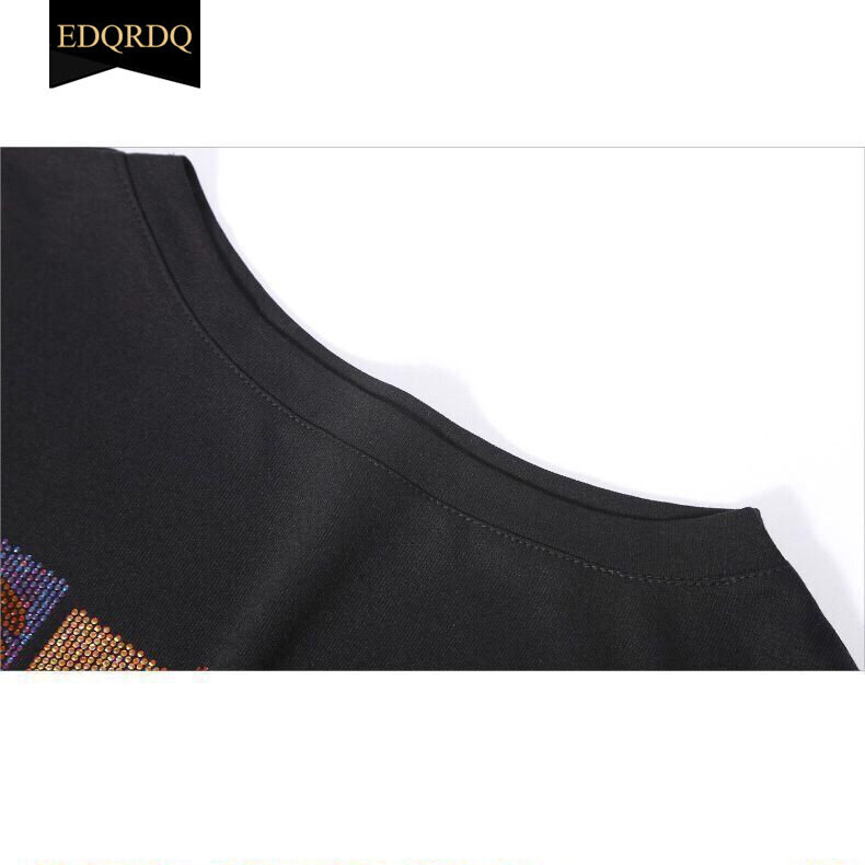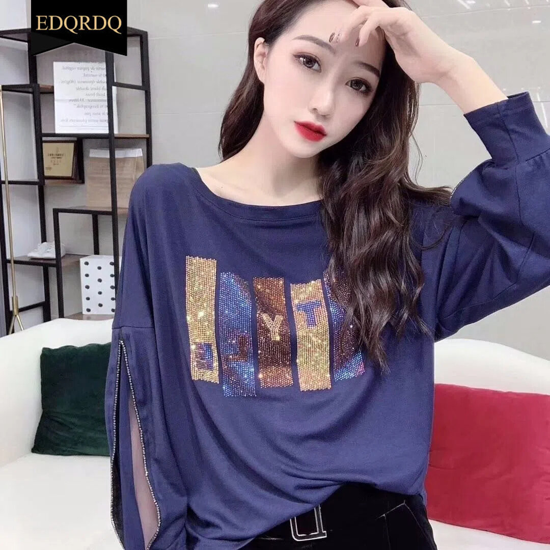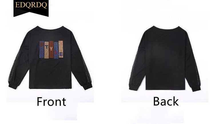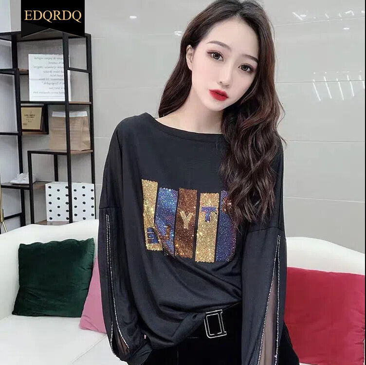 EDQRDQ Fashion Plus Size Tops Zipper Lace Tee Letter Glitter Trend Blouses for Women