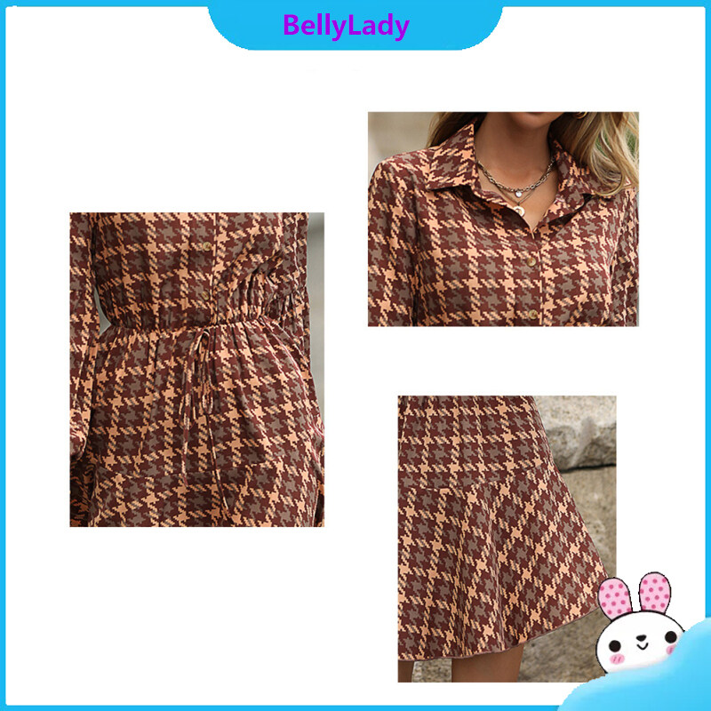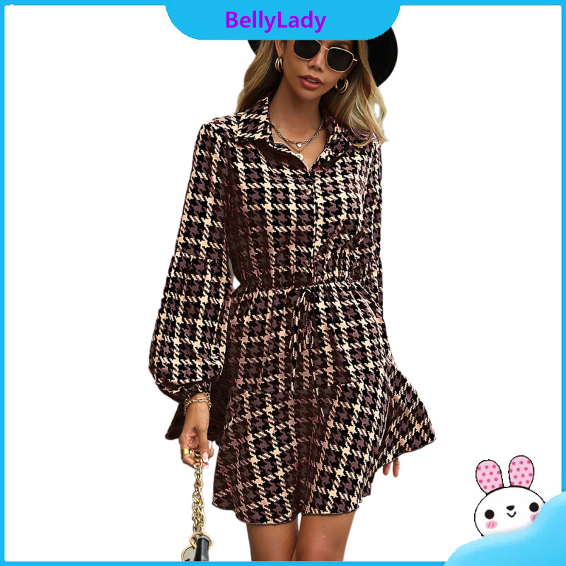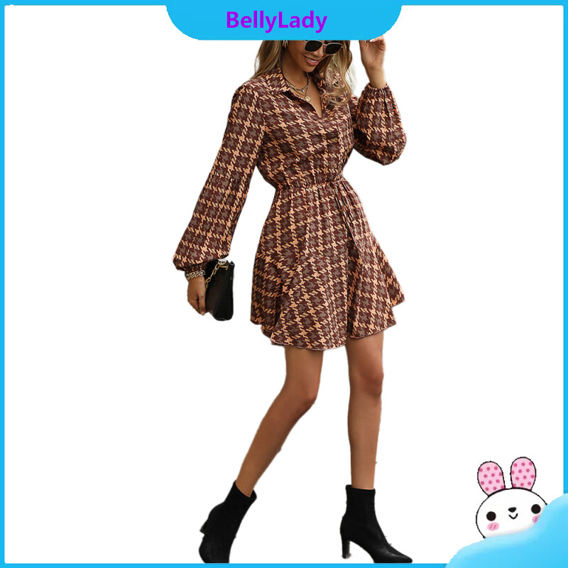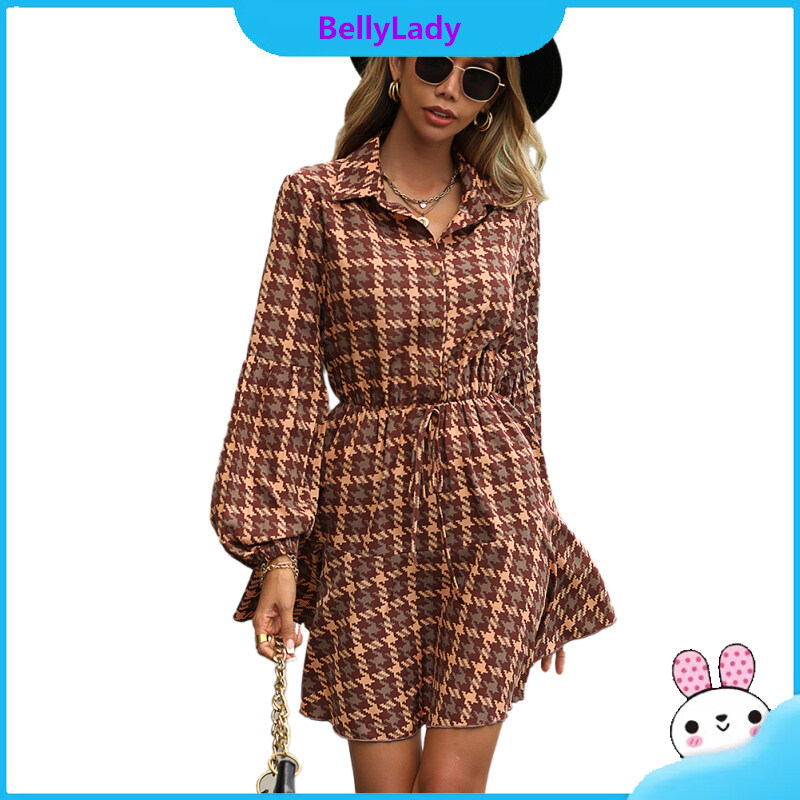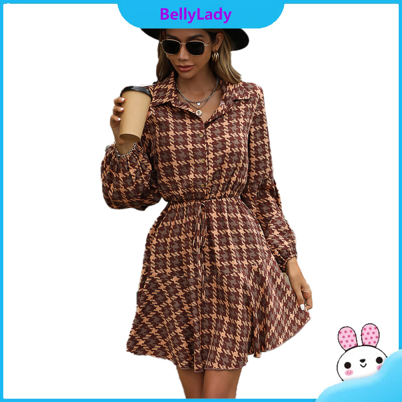 100%polyester Autumn Winter Popular Women Long-sleeved Plaid Dresses