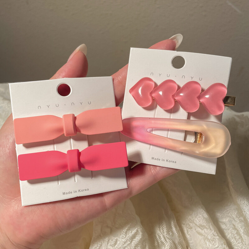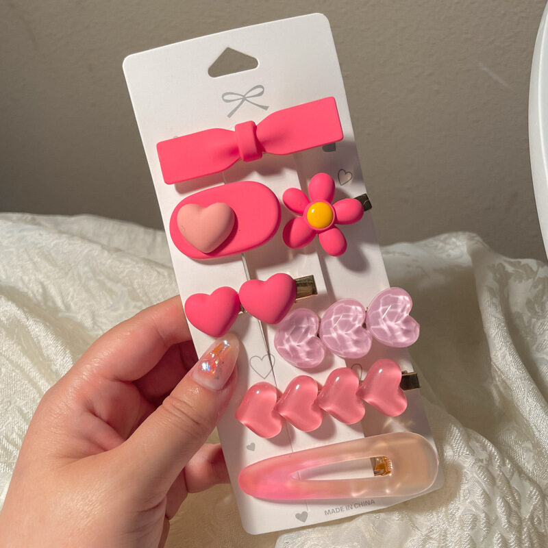 Color: pink bangs clip three-piece set, 1# peach two-piece set, love song 4 pieces, Yao Feng 4 pieces, story 4 pieces, flower 4 pieces, tenderness 4 pieces, flower 4 pieces, Mori series 4 pieces, grapefruit 4 pieces, lemon 6 pieces, blue sky 8 pieces, blue eyes 10 pieces, spring breeze 7 pieces.