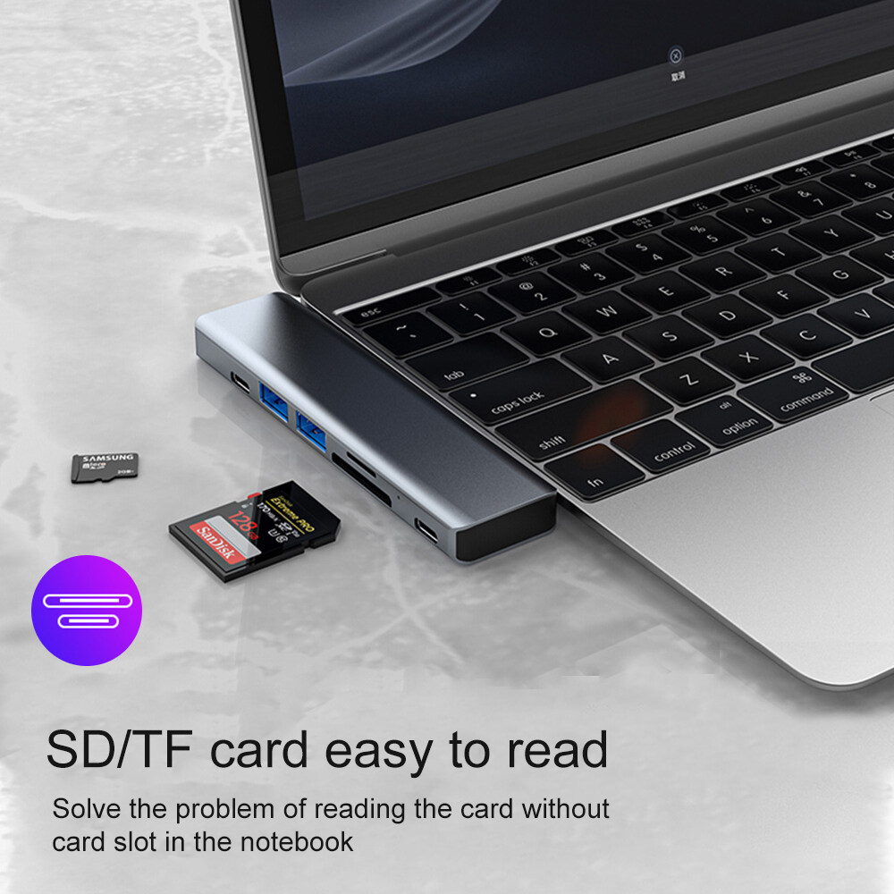 7 in 1 Double Male Type-C HUB Aluminum USB C Hub Adapter 4K HDMI-compatible Thunderbolt 3 PD Fast Charging For MacBook Pro [yococo]