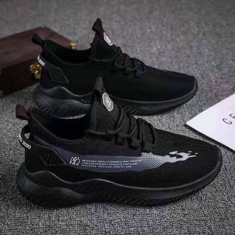 Mesh Surface Shoes Men's Summer Breathable Thin Mesh Surface Hollowed Large Mesh Men's Shoes Casual Running Black Flyknit Sneaker