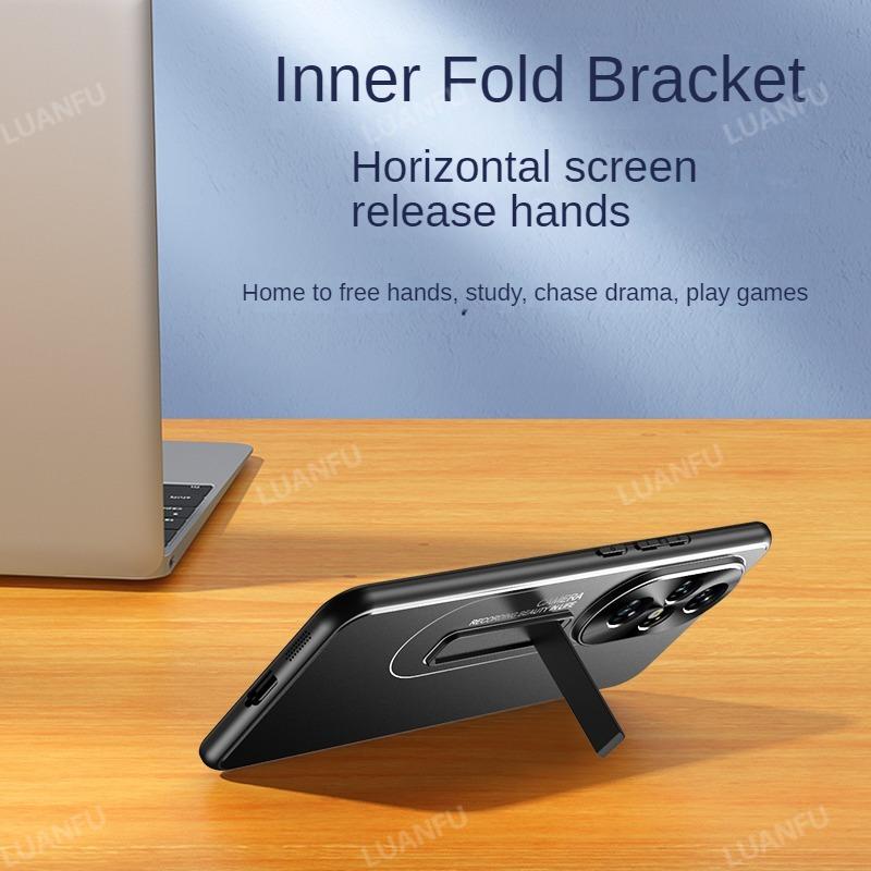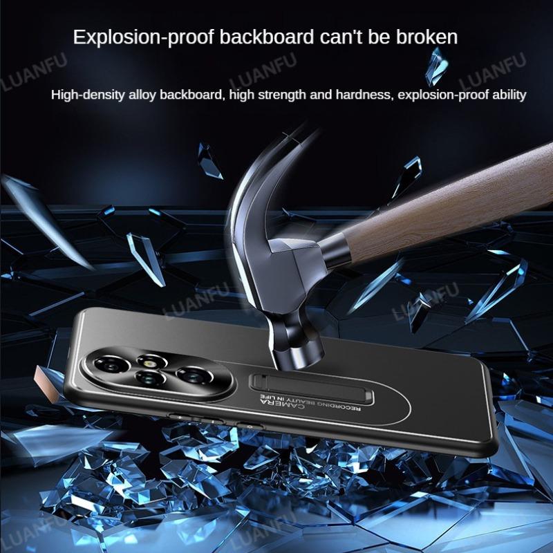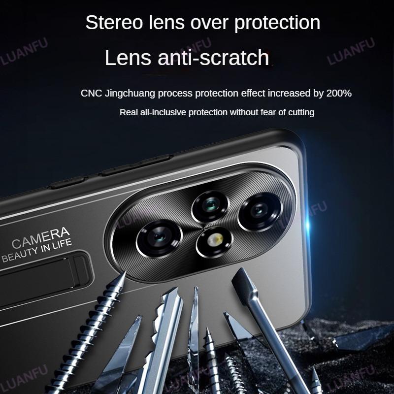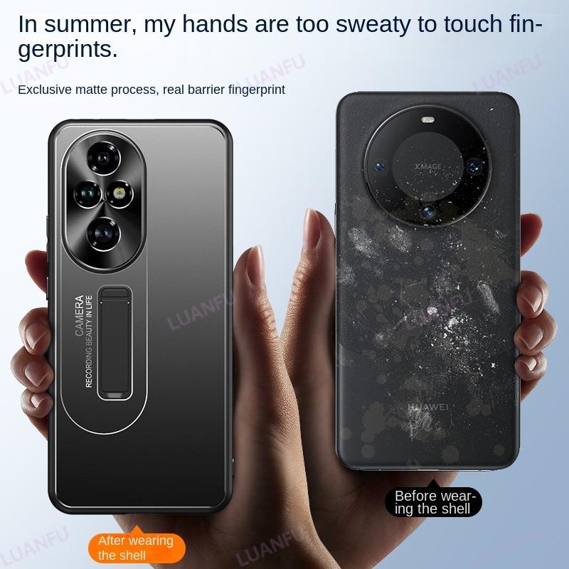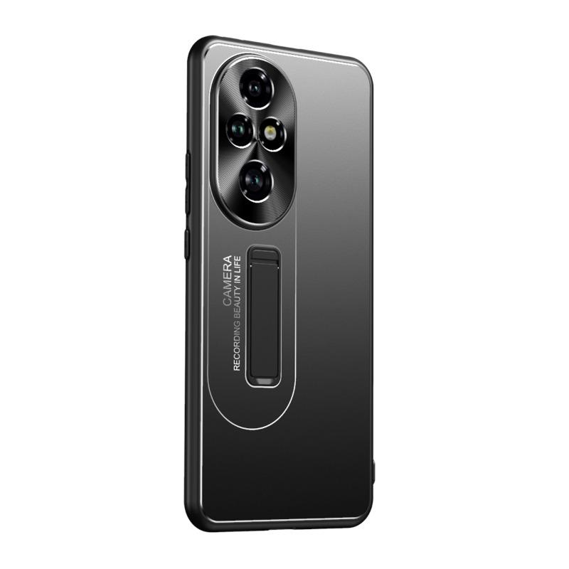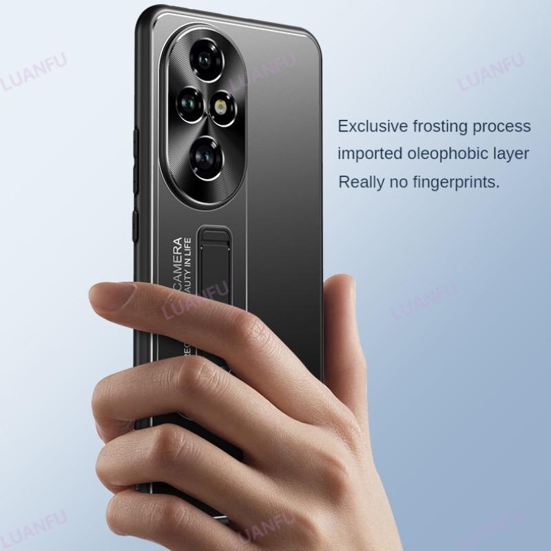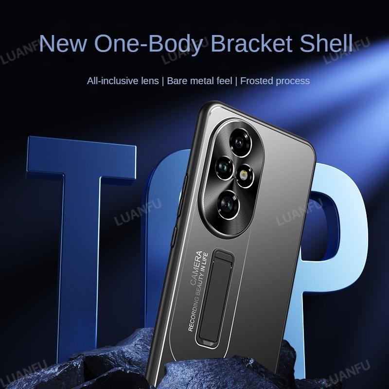Case for Honor 200 Pro / Honor 200 5G Frosted Metal Back Cover Inlaid Metal Bracket Camera Lens Protection Anti-fingerprint Anti-drop Shockproof Phone Case