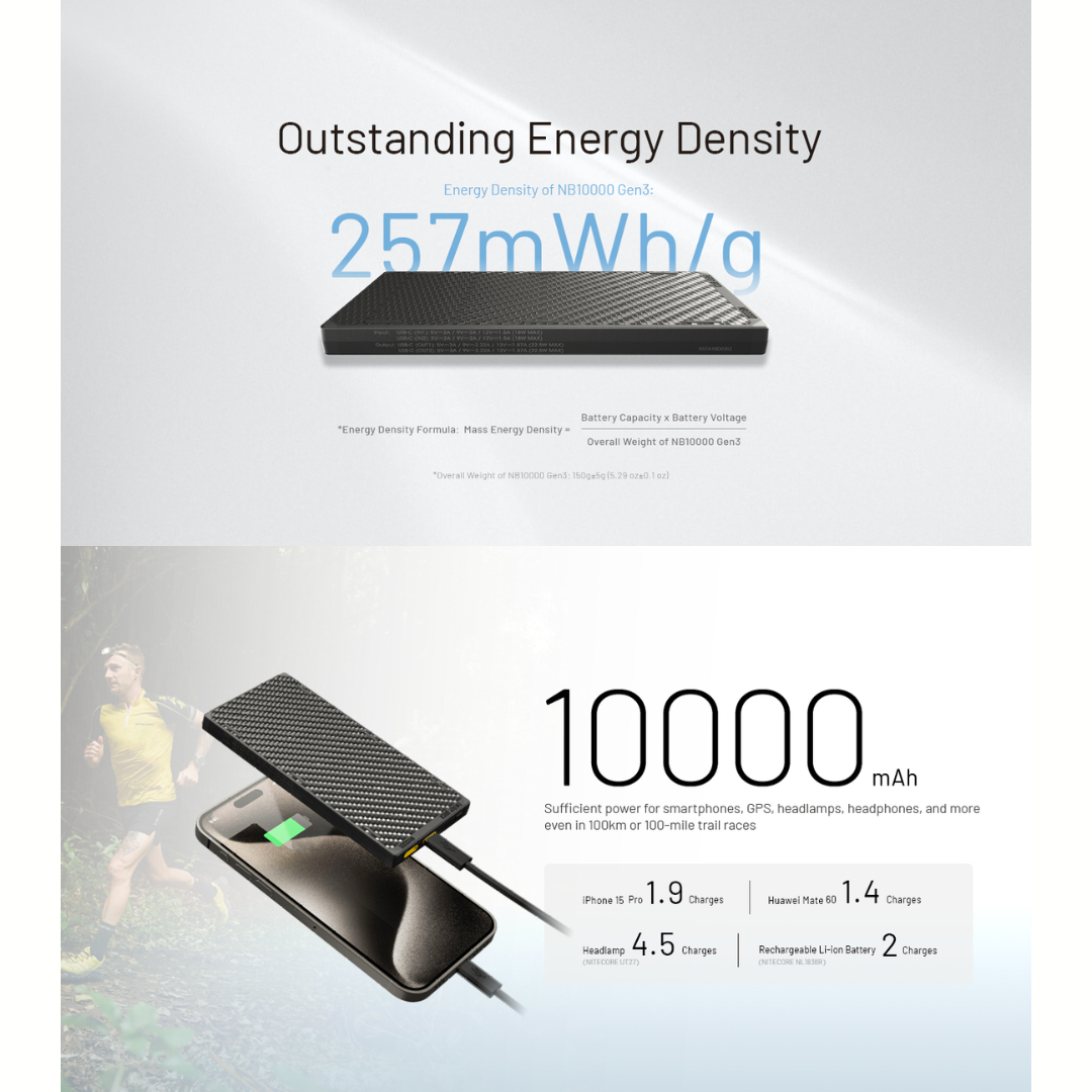 Nitecore NB10000 Gen 2 (USB-A+USB-C) / Gen 3 (USB-C x 2) Quick-Charge Dual Port 10000mAh Power Bank Powerbank