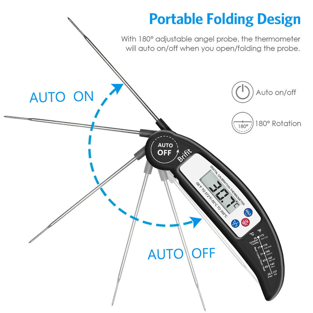 ORIA Digital Meat Thermometer, Instant Read Cooking Thermometer, Electronic Meat Thermometer With Probe for Kitchen, BBQ, Poultry, Grill Food & Candy- Fordable, Fast & Auto On/Off