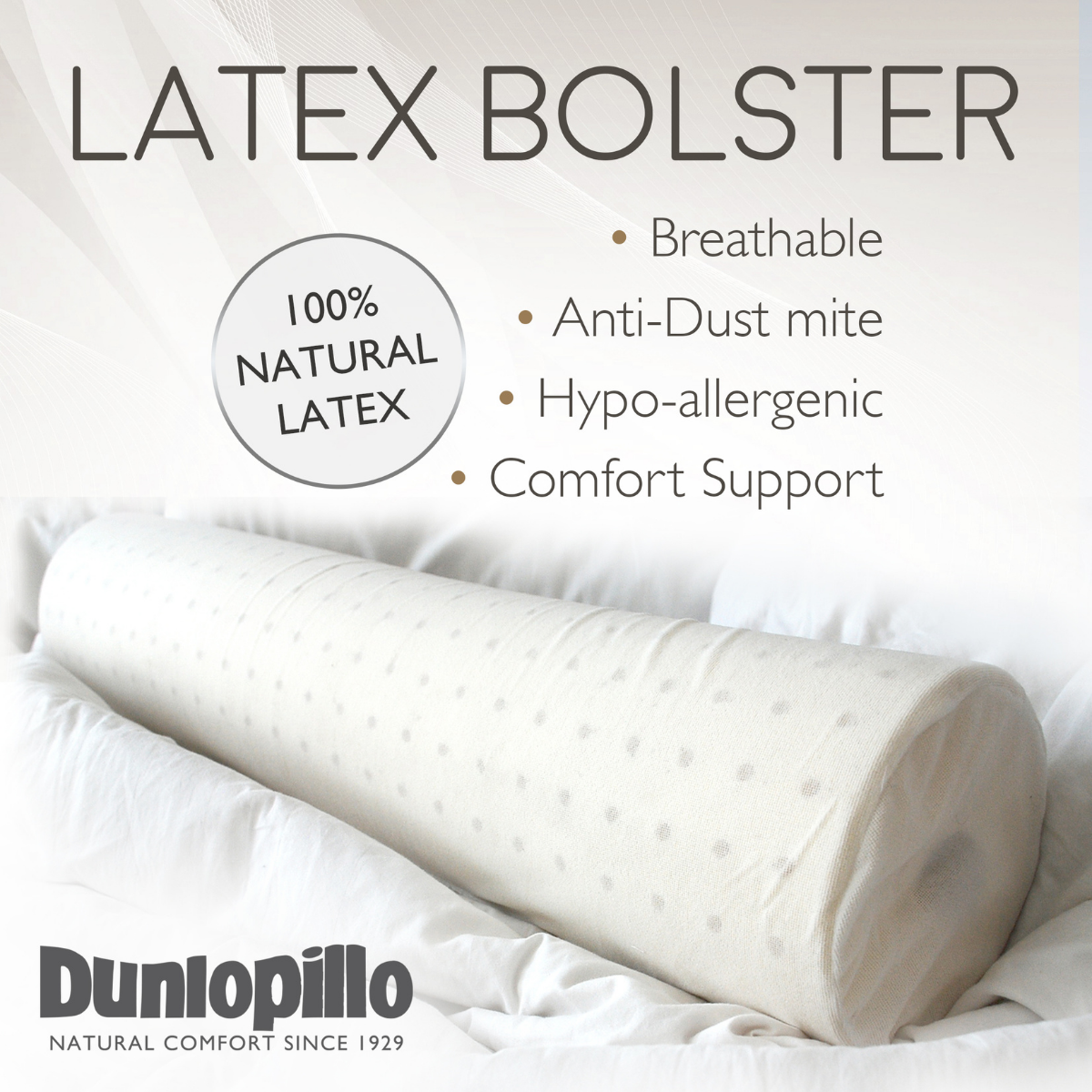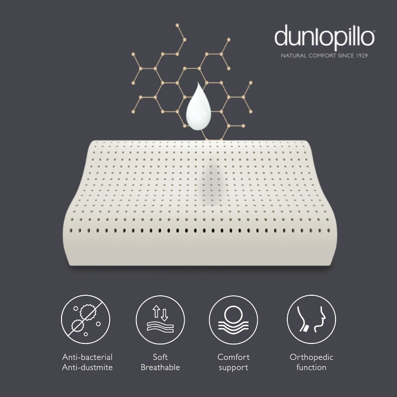 [SG Stocks] Natural Latex Pillow/ Bolster from DUNLOPILLO Indonesia - HYPOALLERGENIC & ANTI-MICROBIAL, Superior Neck Support. 邓禄普天然乳胶枕