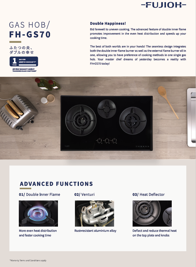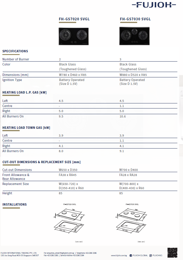FUJIOH FH-GS7020 SVGL 2 BURNER DOUBLE INNER FLAME GLASS GAS HOB