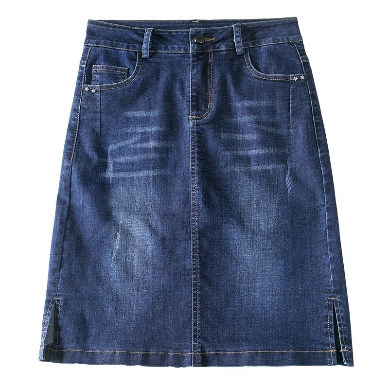 Denim Skirt Women's Summer 2021 New High Waist A- line Skirt Fashion Casual Split Sheath Step Skirt